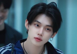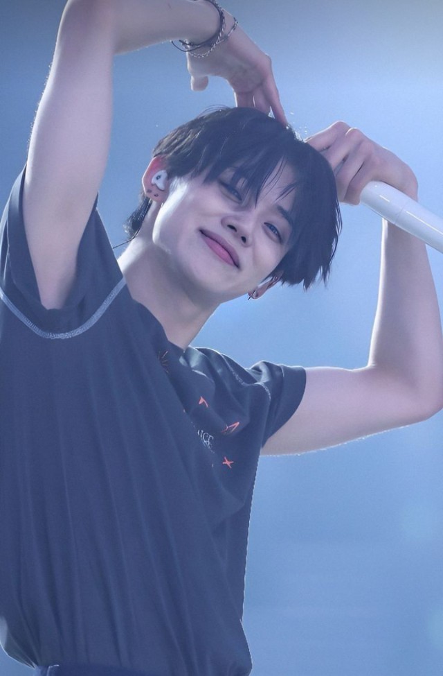 czarne spodnie i włosy które wyglądały zupełnie jak włosy Youngmina............. . Podążałem