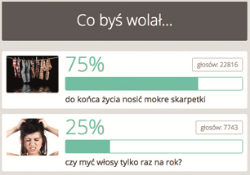 1. Co wolisz?Słuchać tylko tej muzyki, którą wybierze twoja mama.Słuchać tylko tej muzyki, którą wybierze twój tata.2. Co wolisz?Całe życie być dzieckiem.Całe życie być dorosłym.3. co wolisz?Psy.Koty.4. Co wolisz?Mieć 1, prawdziwego przyjaciela.Mieć paczkę znajomych z którymi się dobrze dogadujesz, ale nikomu w pełni nie możesz zaufać.5. Wolisz:słodkie słodycze.kwaśne słodycze.6. Co wolisz?Dostać ręcznie zrobiony prezent.Dostać prezent kupiony w sklepie.7. Co wolisz?Nie podobać się sobie.Nie podobać się innym.8. Co wolisz?Kawę.Herbatę.9. Co wolisz?Filmy.Seriale.10. Co wolisz?Mieć duży, ale brzydki pokój.Mieć mały i ładny pokój.11. Co wolisz?Mieć dużo dzieci.Nie mieć dzieci.12. Co wolisz?Żyć w baśniowej krainie.Żyć tu gdzie jestem.13. Co wolisz?Język polski.Język angielski.14. Co wolisz?Drogie sklepy.Tańsze sklepy.15. Co wolisz?Morze.Góry.16. Co wolisz?Mocny makijaż.Brak makijażu/delikatny makijaż.17. Co wolisz?Być pierwszą miłością.Być ostatnią miłością.18. Co wolisz?Żyć 120 lat w smutku.Żyć 20 lat w szczęściu.19. Co wolisz?Żeby Twoje życie było proste, zwykłe i stabilne.Żeby Twoje życie było pełny przygód i tych dobrych, i tych złych.20. Co wolisz?Quizy osobowości.Głosowanie. 0 Super! 30 Obserwuj autora Dodaj do ulubionych Następny quiz za: 10 AnulujRozwiąż teraz Jaki magiczny kolor oczu najbardziej do Ciebie pasuje? Quiz w Poczekalni. Zawiera nieodpowiednie treści? Wyślij zgłoszenie Zgłoś za plagiat Zgłoś za nieodpowiednie treści Wyślij