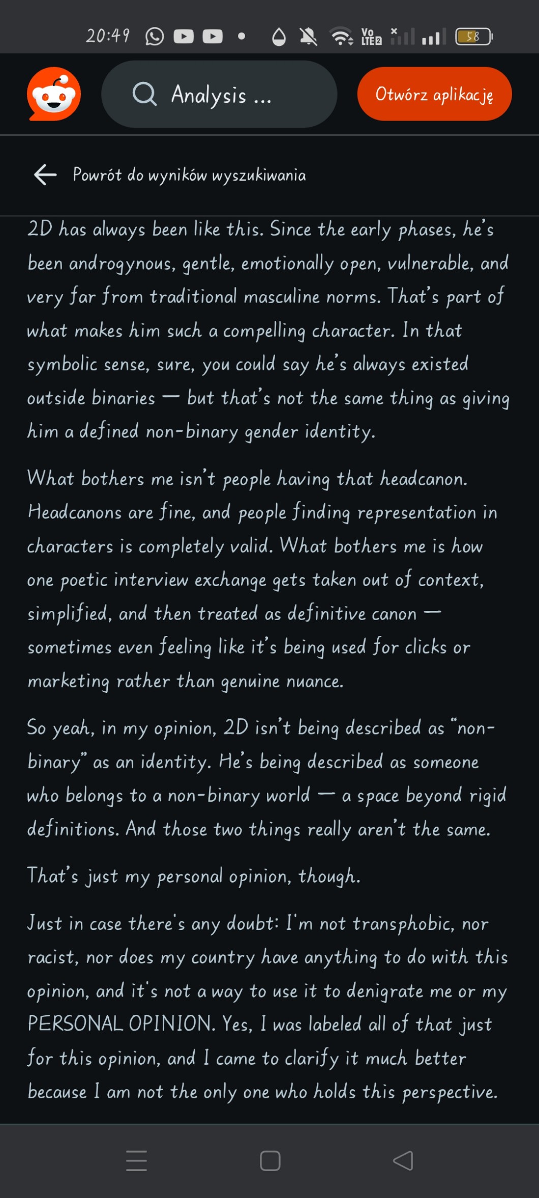 Bo jakby w jednym wywiadzie oni powiedzieli że nie do końca on jest male, i nagle wszyscy zaczęli gadac że on jest canonicznie nb, i ja miałam takie "ej co", i jacyś inny ludzie na pinie zaczeli mn hejtowac ze jestem nietolerancyjna