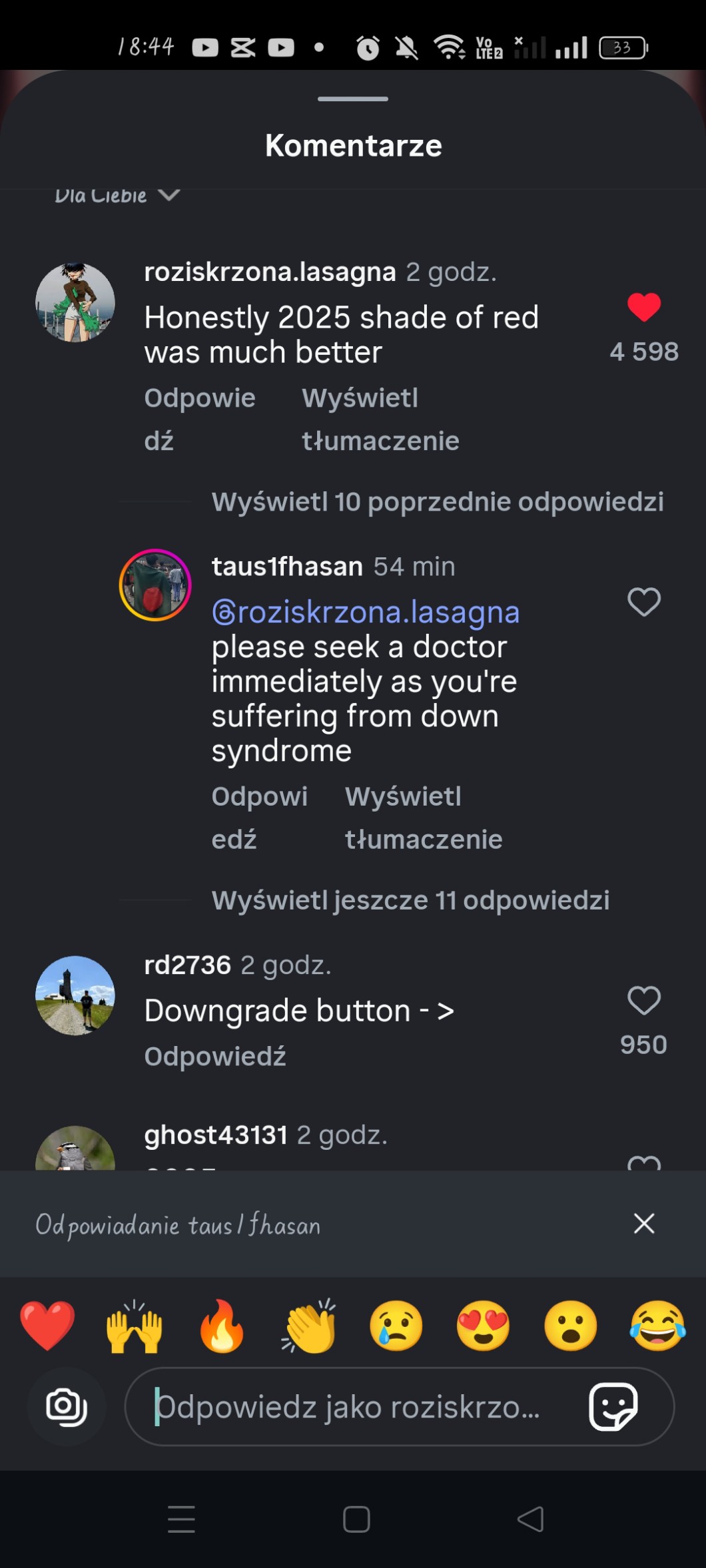 JA PO PROSTU POWIEDZIAŁAM "HEJ GUYS PODOBAŁ MI SIĘ TAMTEN ODCIEN CZERWONEGO ❤️❤️" A ONI KURDE 19 ODPOWIEDZI ZE JAK TAK MOGE MOWIC, JEDEN TYP MI POWIEDZIAŁ ZEBYM POSZLA SIE LECZYC
