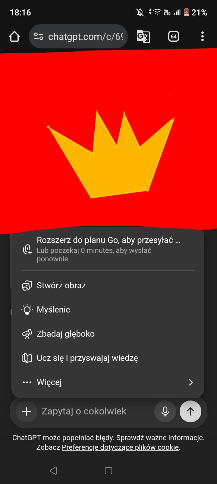 • AUTOR@nirvana14 tylko chatgpt i chciałam go zamęczać obrazkami i to pokazał jak był koniec czasu tego że nie mogę mu wysyłać zdjęć wiem nie umiem tłuaczyć