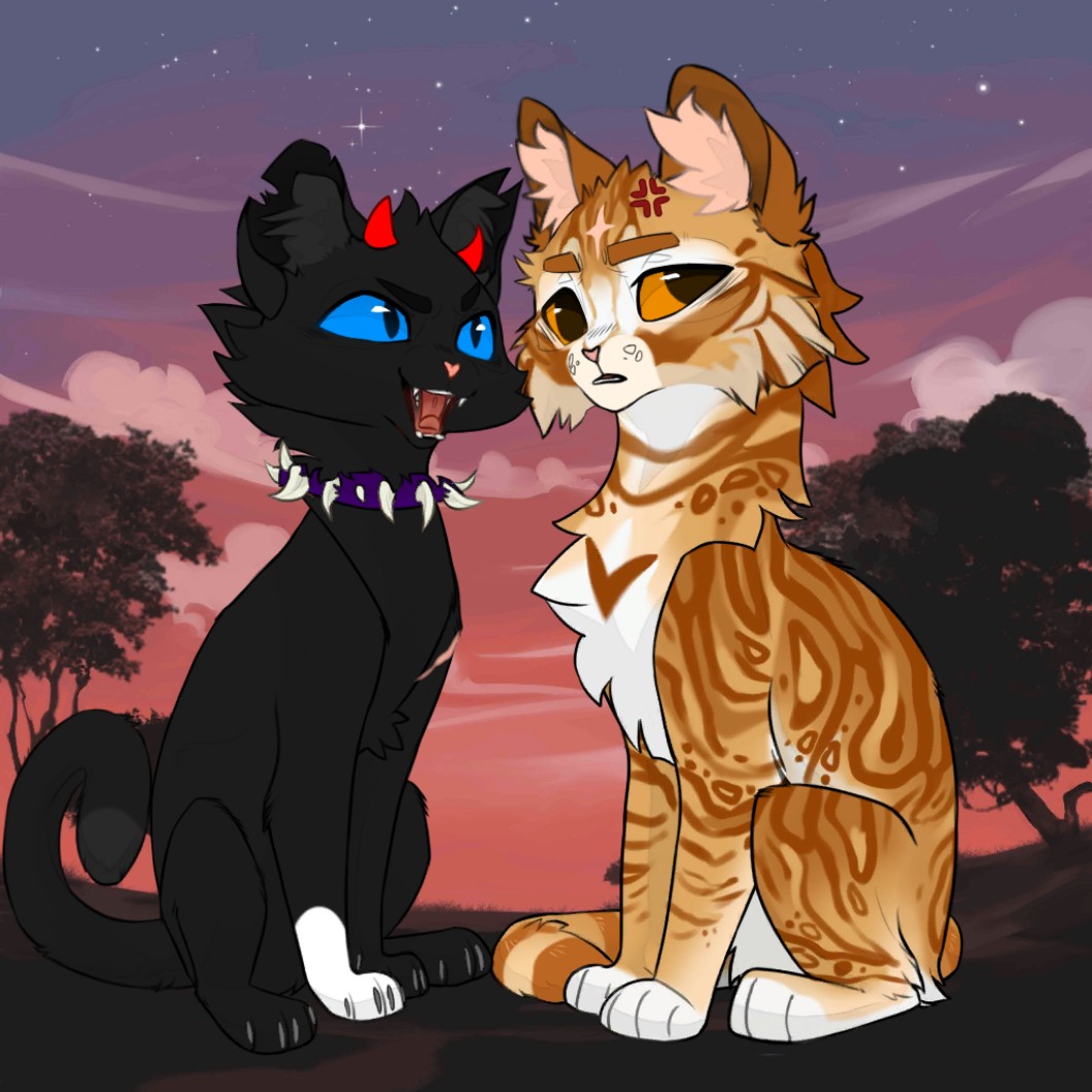Robione przeze mnie w aplikacji avatar maker para kotów (funfact: na obrazku jest jeżyn z wiewiórą)