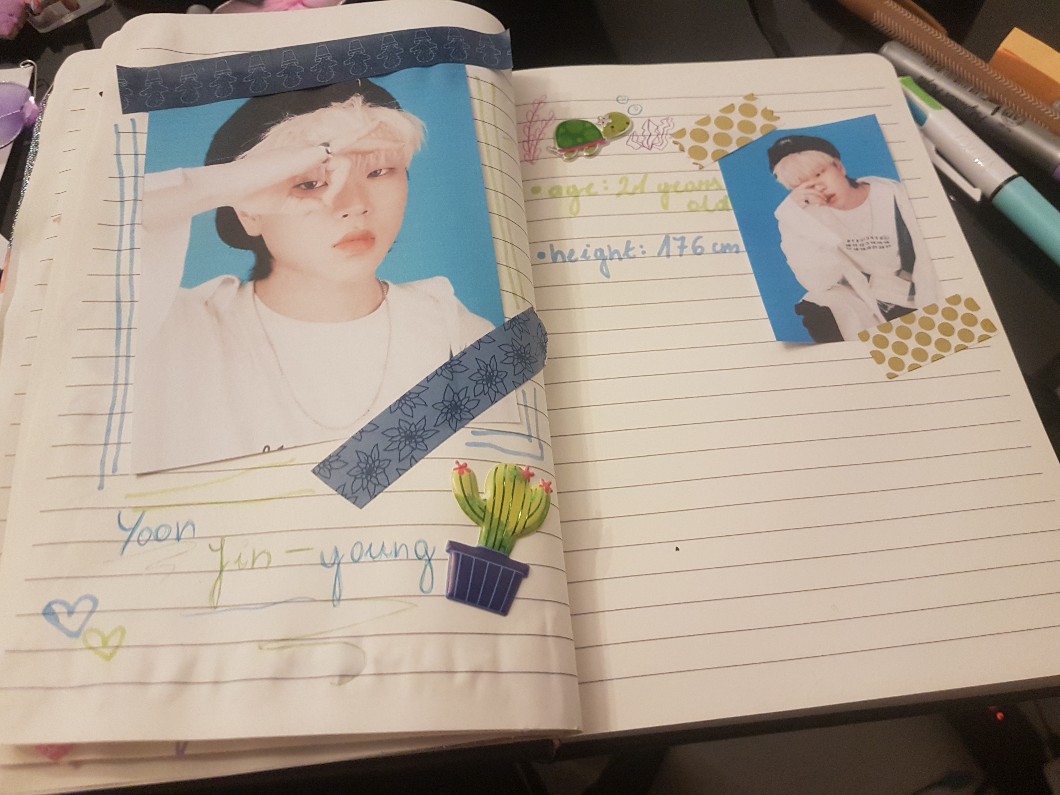 AUTOR•Moja koleżanka jest totalna kpopera i uznałam z drugą przyjaciółka że zrobimy jej na urodziny dziennik z jej kpop chłopcami, już mamy pare stron i no.. 👁👄👁