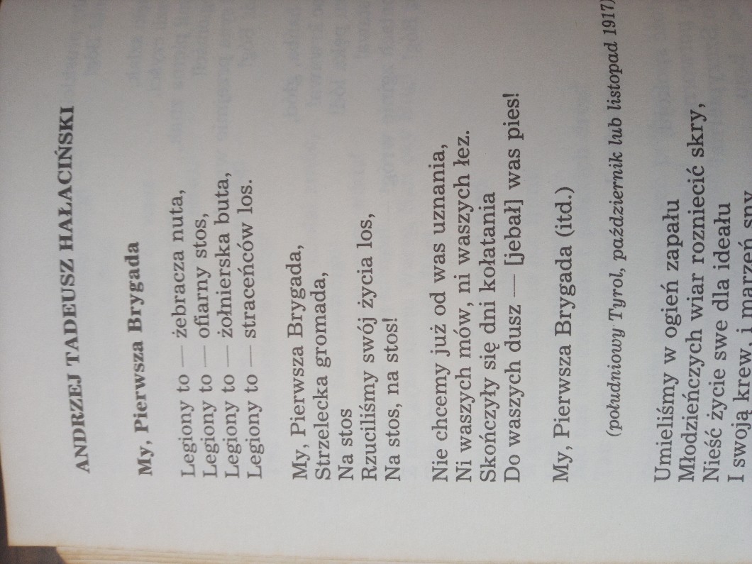 Znalazłam książkę z pieśniami i wierszami patriotycznymi i patrzcie co znalazłam… Jakby kogoś interesował oryginał 😅 ☟︎︎︎ (ostatnia linijka)