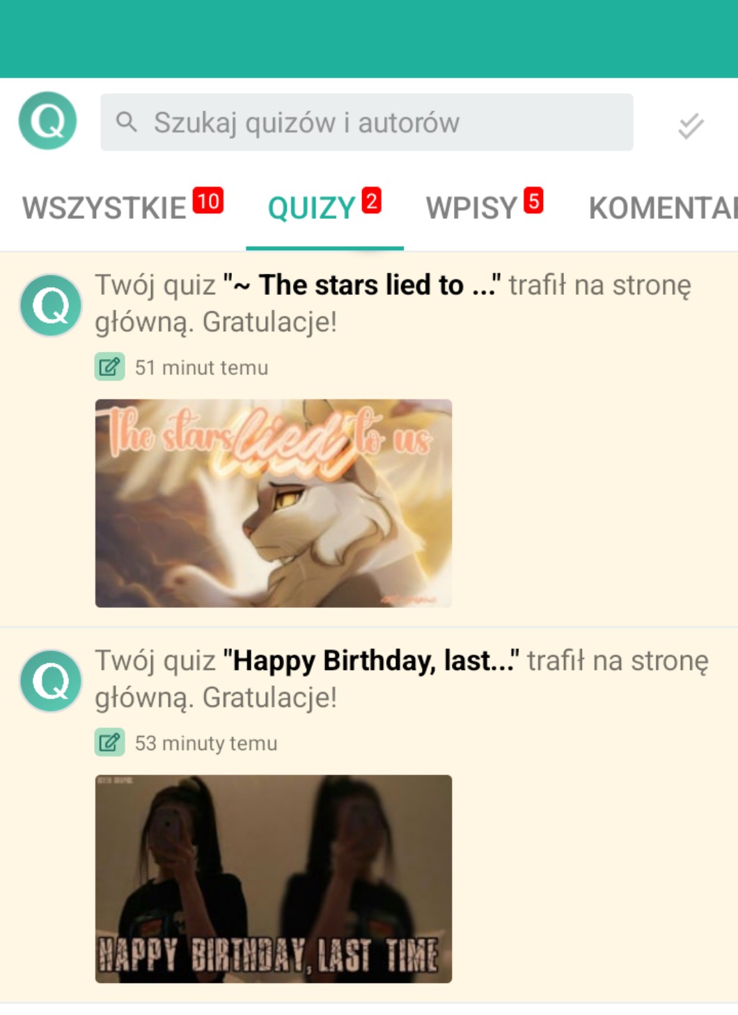 No i trochę zdziwił mnie fakt, że to opo sprzed miesiąca wyświetla się jako mój najnowszy quiz, idk co się stało
