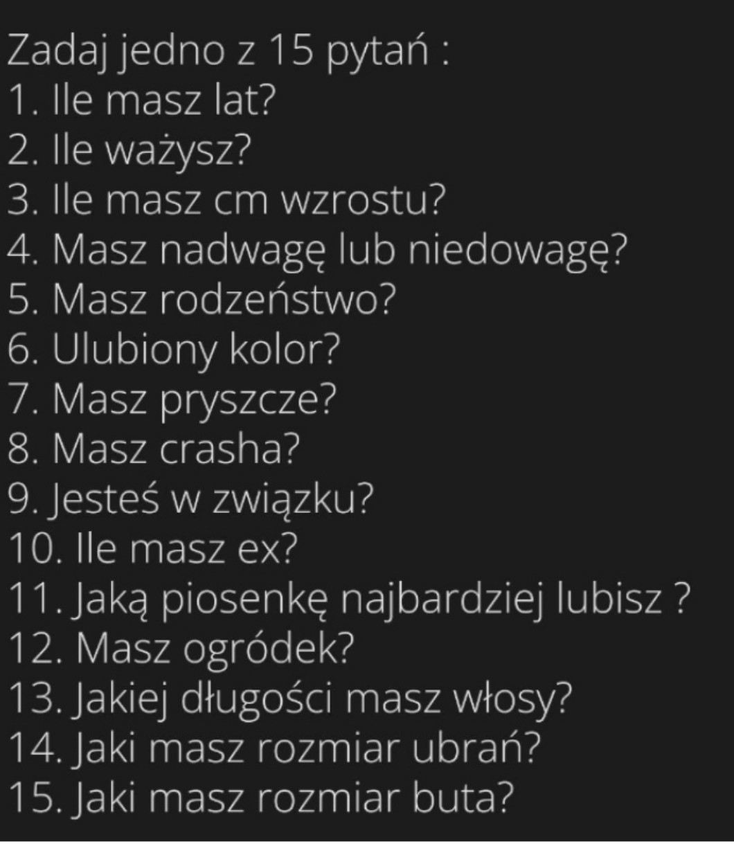 (Zanim zadacie jakiekolwiek pytania to sprawdźcie moje ,,o mnie,, by nie zmarnować pytania na to co tam już jest)
