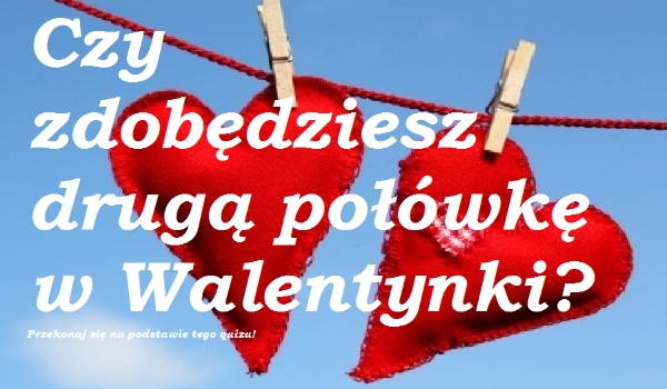 Czy zdobędziesz drugą połówkę w Walentynki? Może… Sprawdź to w tym quizie! To będzie super zabawa! Tylko pamiętaj że mogę się pomylić! Nie ufaj w 100%! Ale baw się dobrze!
