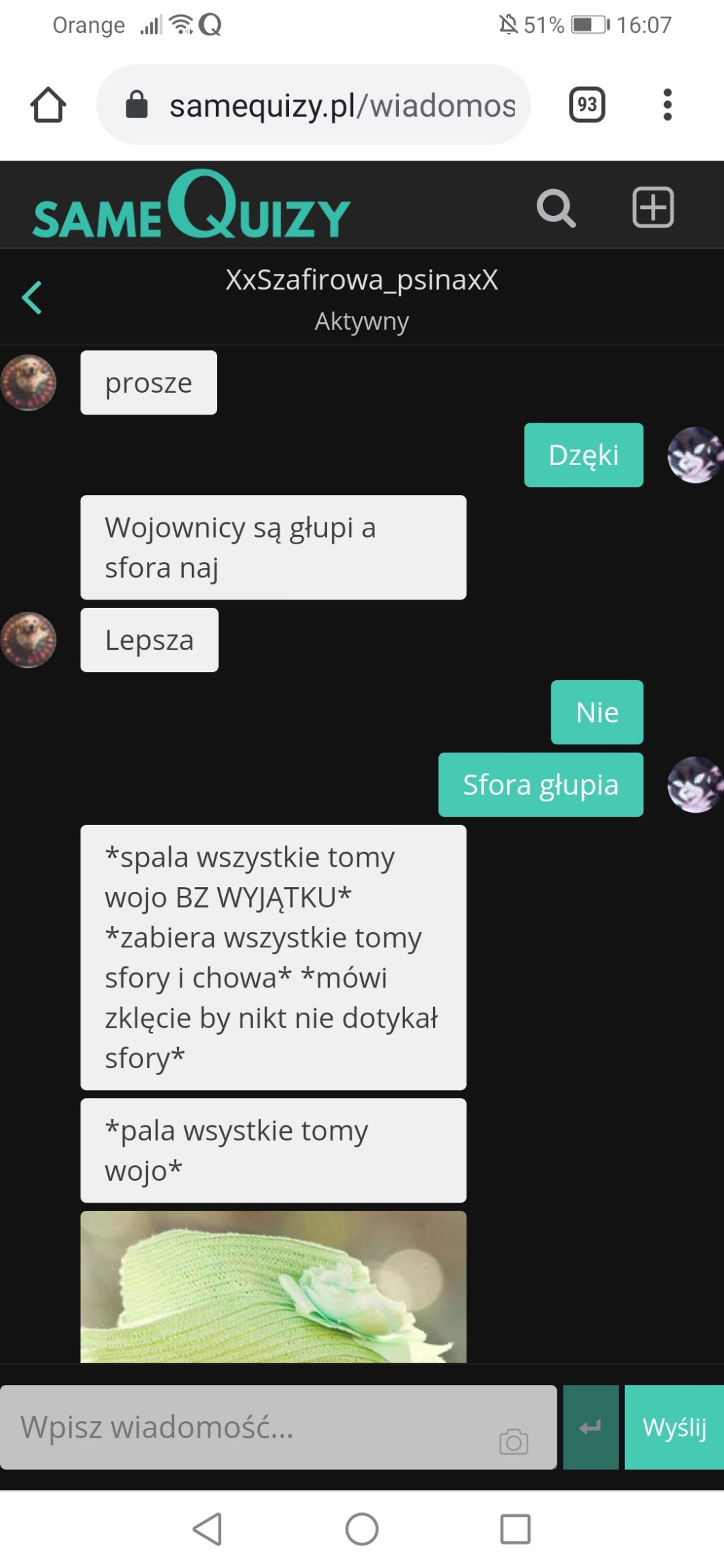 @Sowie_Pioro No, wojowników też nie czytała ;-; ocenia książkę po okładce (nie dosłownie bo wojowników są ładniejsze), a jak powiesz że nie lubisz psów to od razu dodaje o tym wpis🙄, normalnie nie szanuje zdania innych