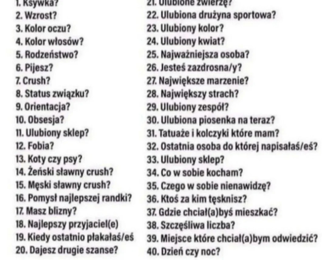 Jedna osoba może zadać maksymalnie 40 pytań