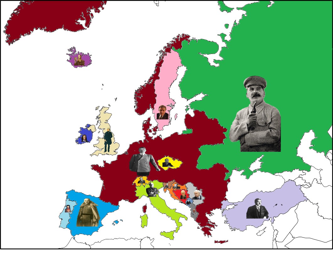 Hitler: Austria, Belgia, Bułgaria, Dania, Francja, Grecja, Holandia, Litwa, Łotwa, Niemcy, Norwegia, Polska, Rumunia, Słowacja, Węgry, Białoruś, Mołdawia, Luksemburg, Monako