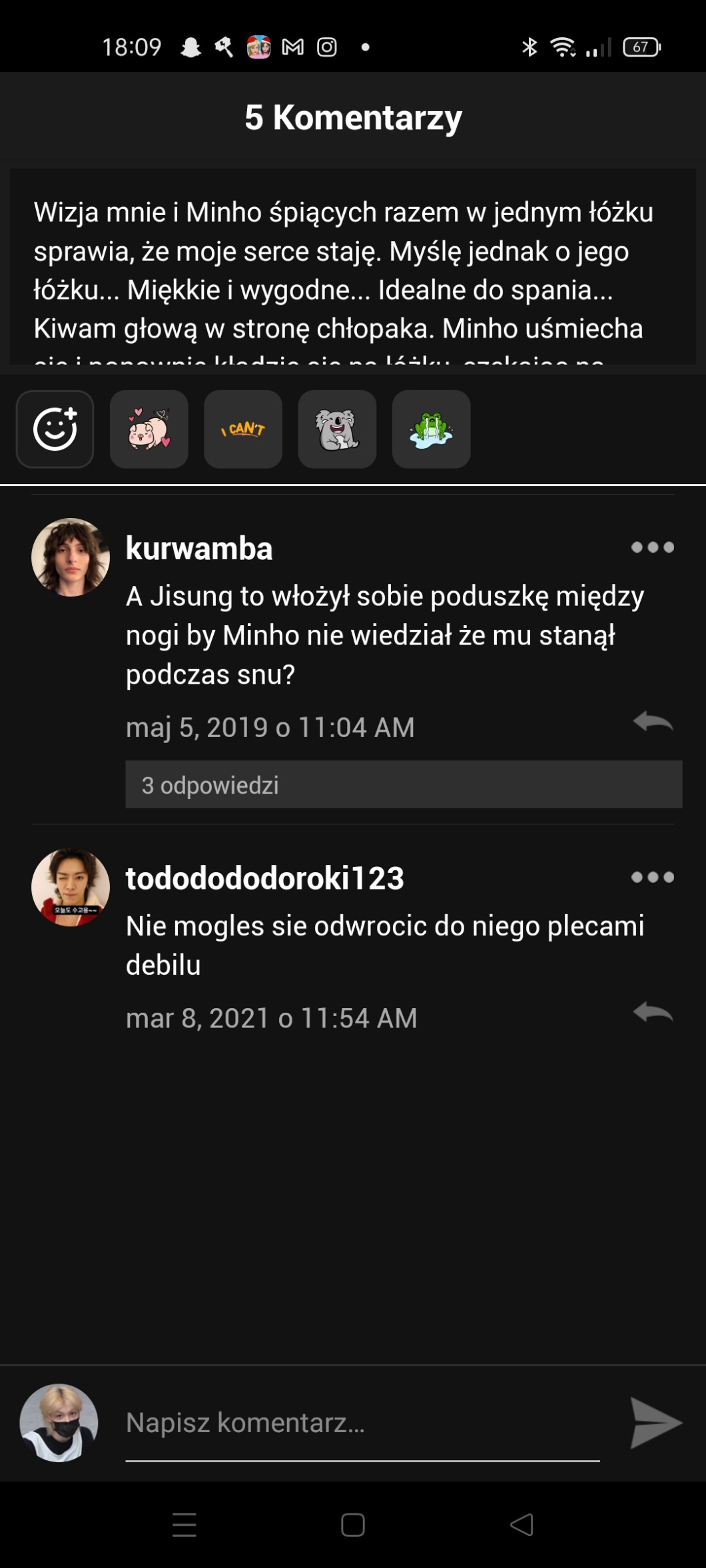 AUTOR•Spokojnie obok w łóżku śpi Felix więc raczej do tego tamtego nie dojdzie więc możesz z nim spać 😁