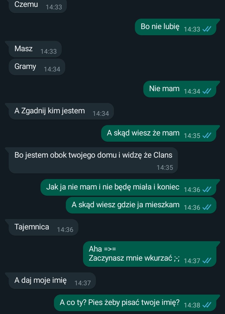 AUTOR•Ostatni debil do mnie napisał. Ale ja mam w kolekcji psa (on mnie się serio słucha jakby był jakimś psem), sługe (krzysiuu) więc nazwanie go psem było normalne, plus on jest jakiś niedorozwinięty jak jakiś zgłupiały pies :^