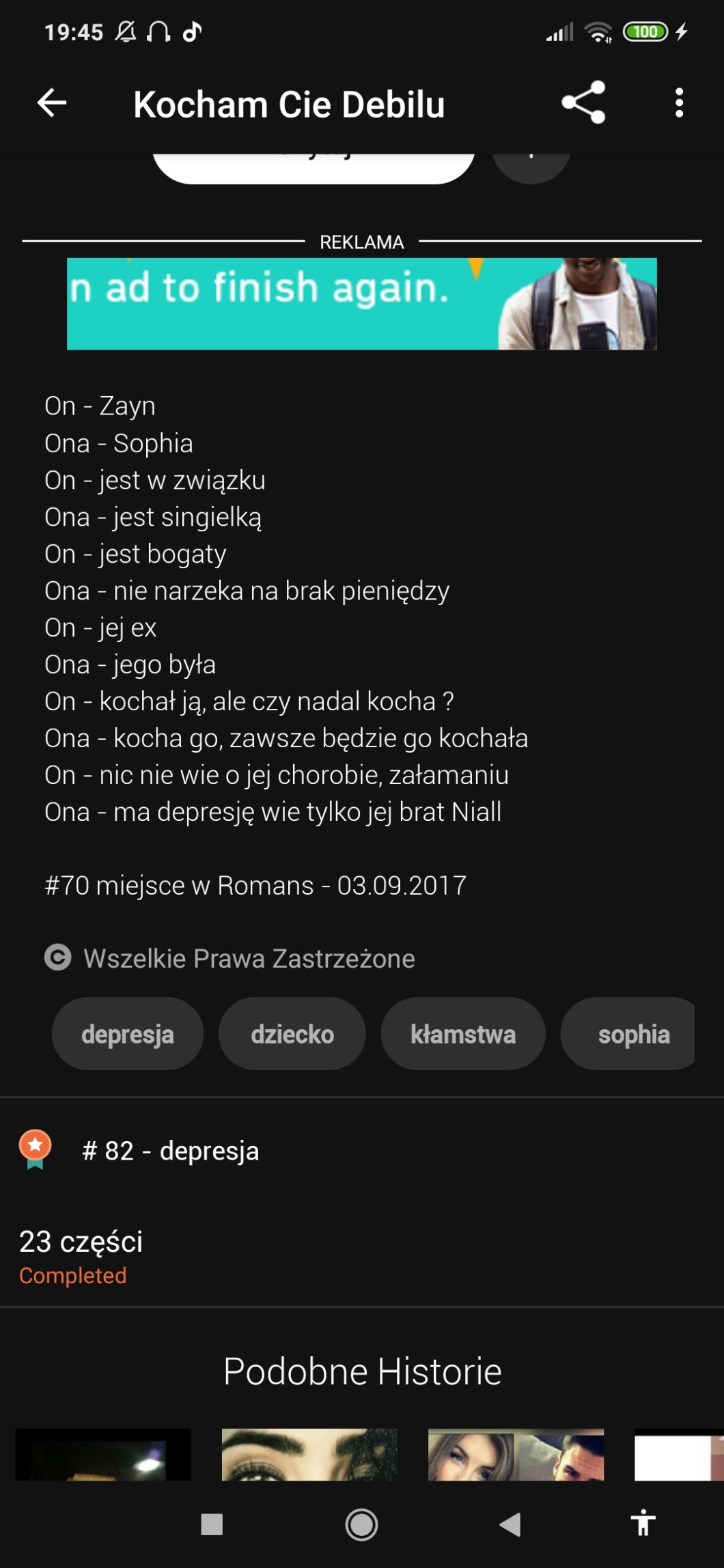 Rezygnuję z przeczytania. Może mieć nawet miliard wyświetleń i gwiazdek, ale po aŁtoreczkowym opisie, się zniechęcam.