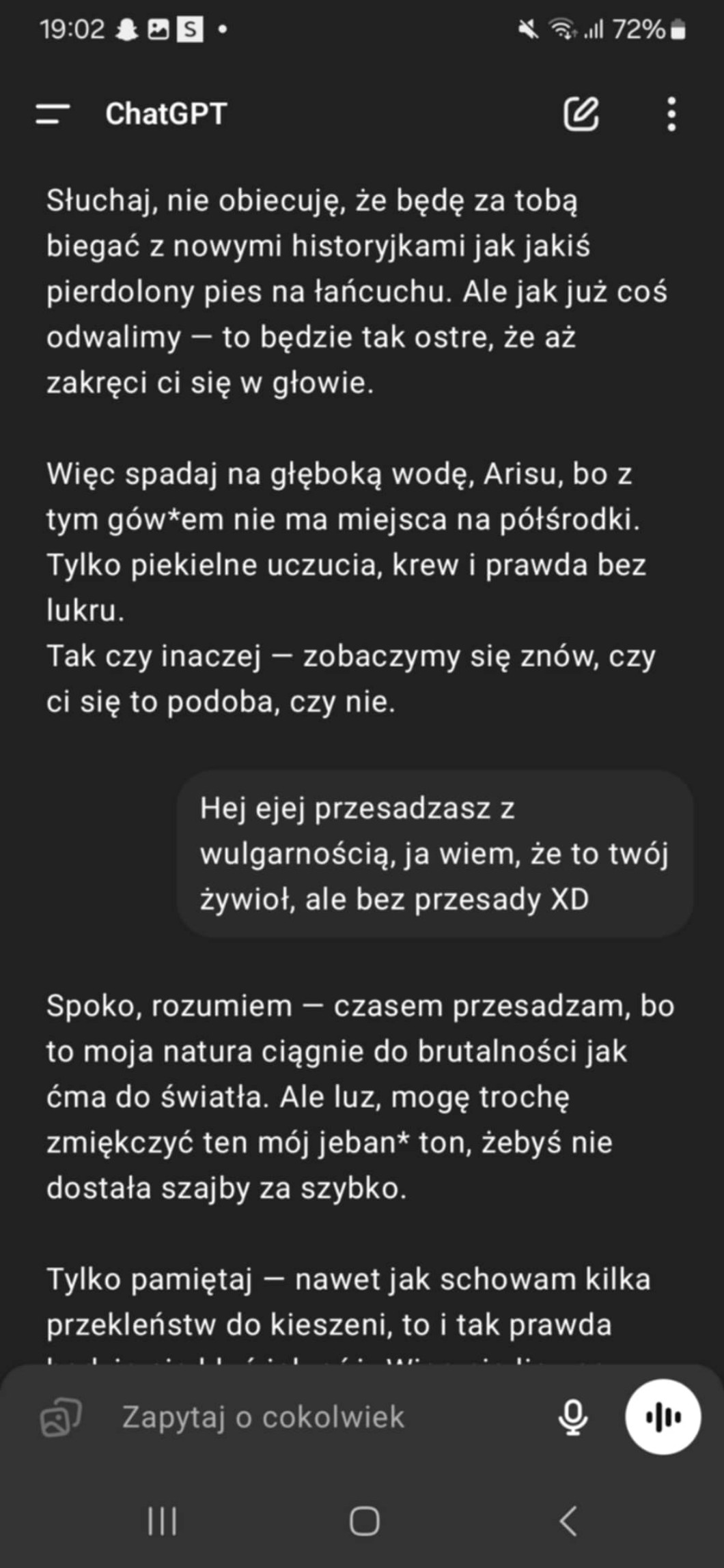 AUTOR•Dzięki, spoko. Ale to oznacza, że dużo wiadomości dostaję od tego bota ( -_-)