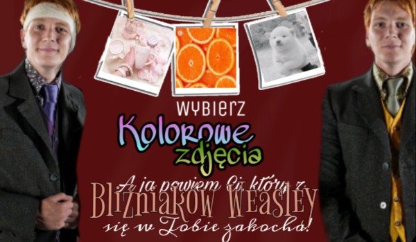 Fred i George, najwięksi dowcipnisie Hogwartu są bliźniakami, więc odróżnienie ich wydaje się niemożliwe. Otóż nie! Który z nich skrywa do Ciebie pewne uczucia? Sprawdź wybierając kolorowe zdjęcia!