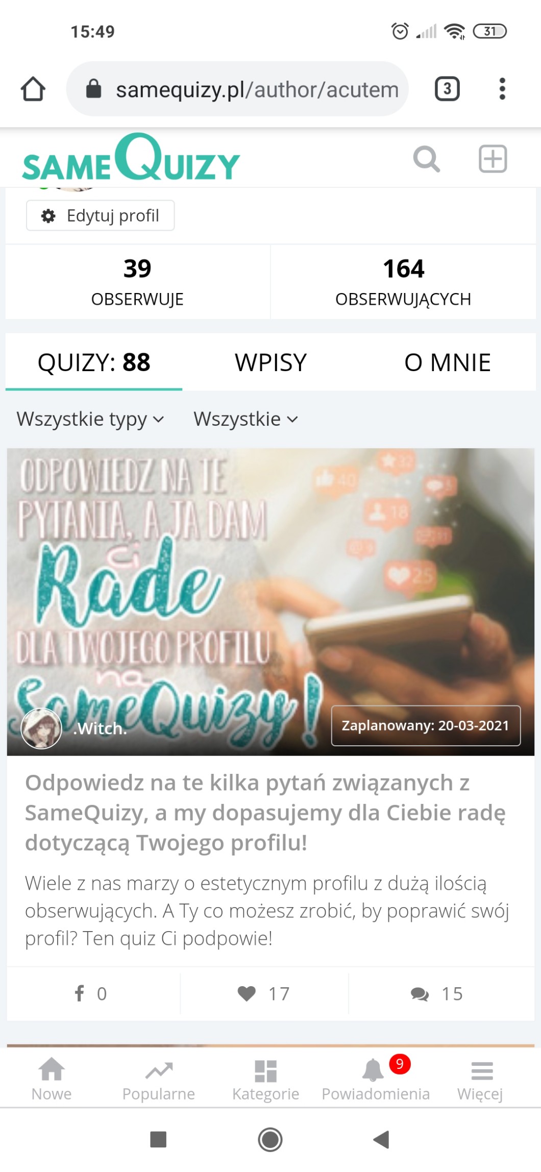 • Zmotywować też Was do działania~ znam doskonały takie sytuacje gdy osoba, którą obserwujesz pisze, że jakiś jej quiz trafia na główną. Wszyscy składają jej gratulacje, w tym Ty jednak tak naprawdę w głębi duszy czujesz że chcesz żeby Twój też tam trafił, chociaż raz.