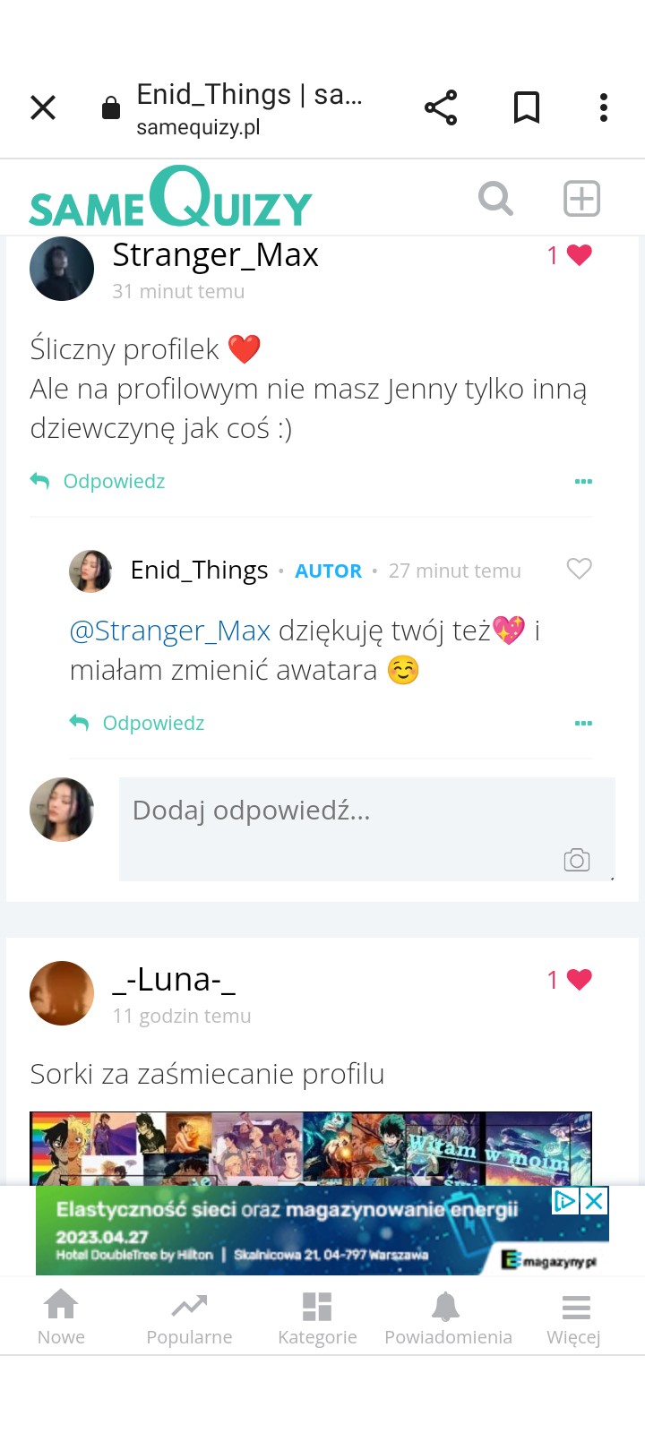 • AUTOR@Stranger_Max dziękuję twój też💖 i miałam zmienić awatara ☺️