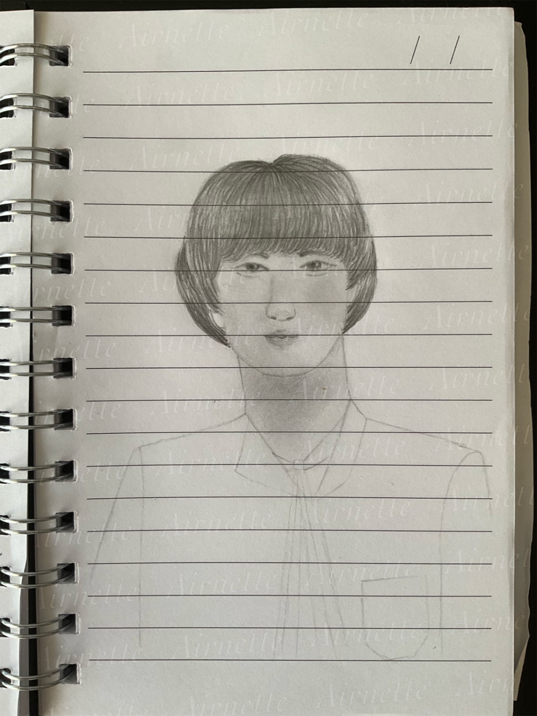 Szkic jest w ołówku, konkretnie w HB i 2B do cieniowania. Znak wodny jest po to, żeby nikt (w tym AI) nie ukradł mi pracy.