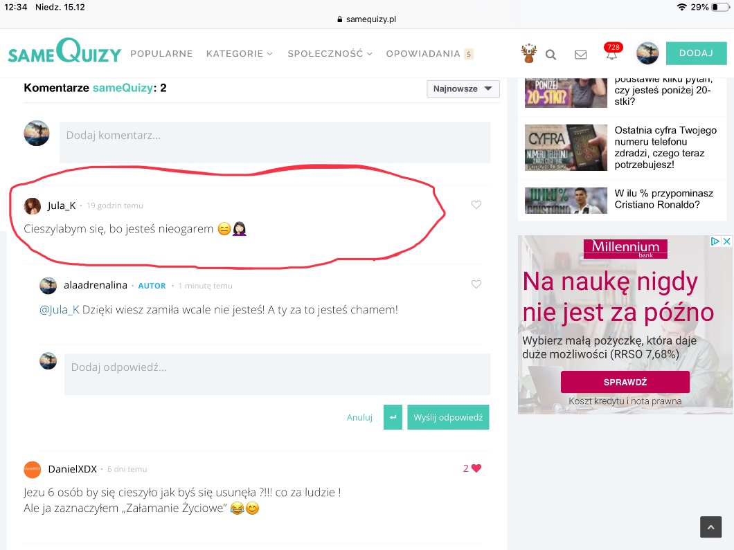 AUTOR•Komentarz pod quizem co byś zrobił gdybym się usunęłam 😒