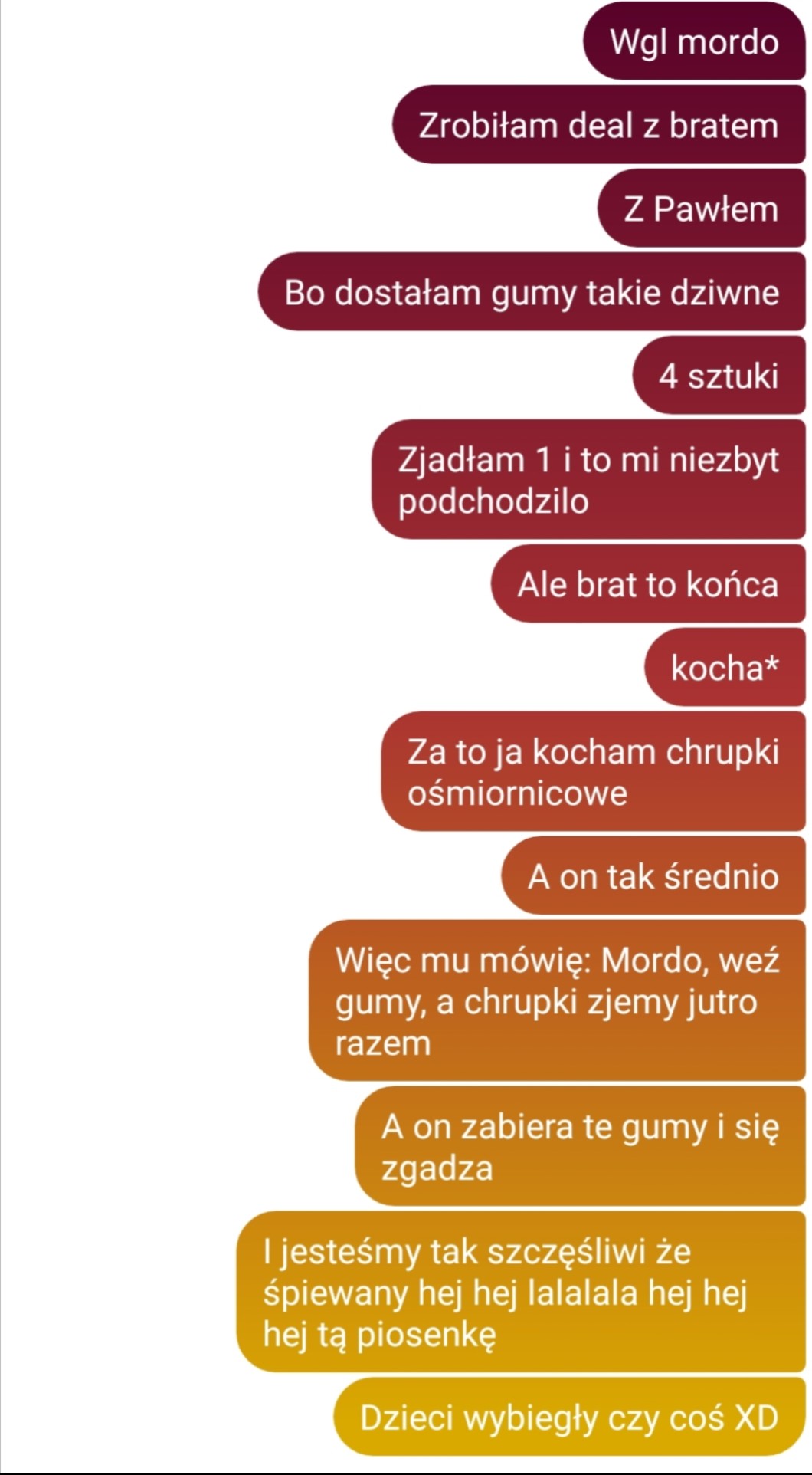 Chociaż Michał ma mentalność takiego dziewięciolatka trochę XD Też jestem najstarsza i ostatnio mnie za to obwiniał XD