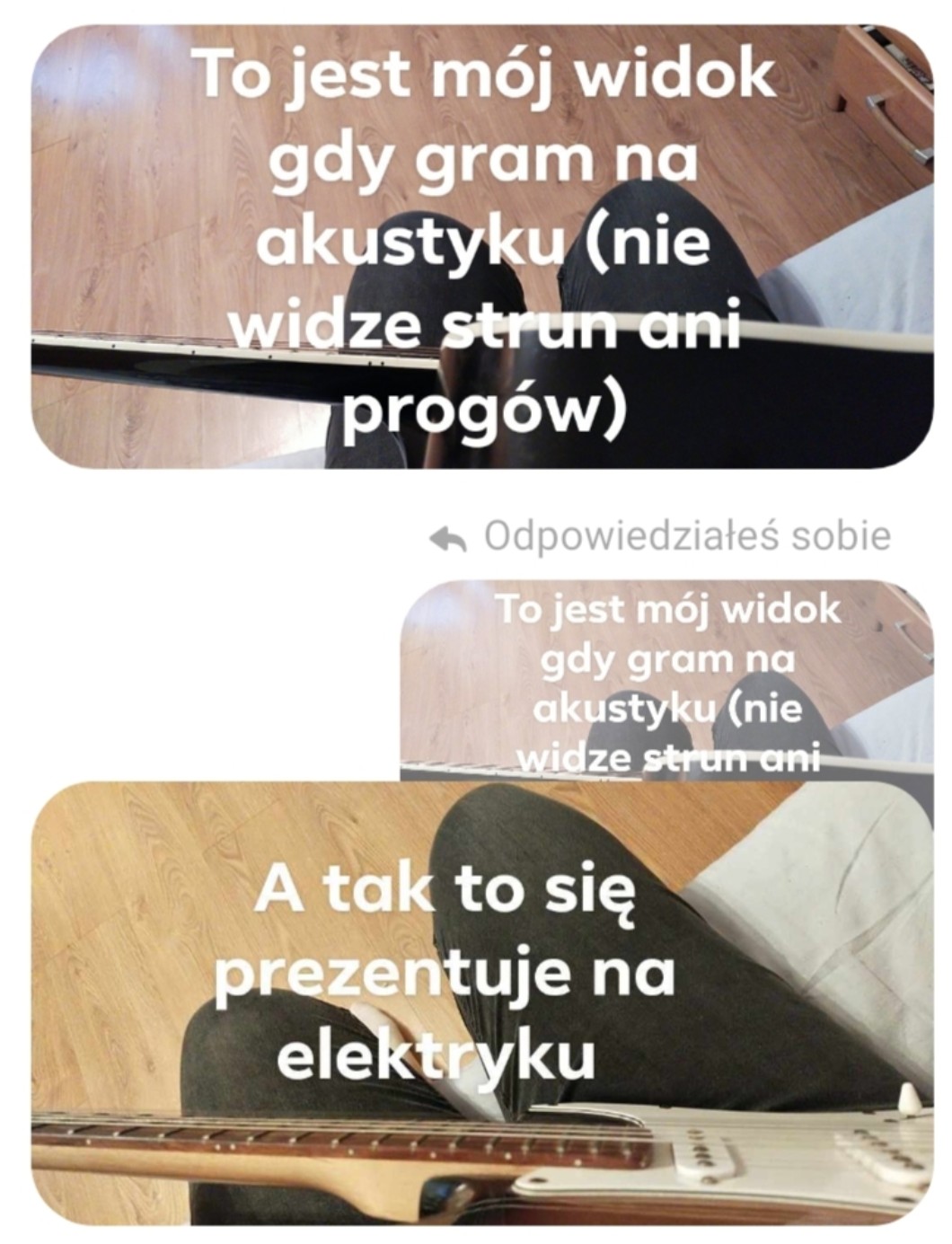 Z kategorii problemy osób, które naukę gry na gitarze zaczęły od elektrycznej: PUDŁO. NIE MOGŁAM SIĘ DO NIEGO PRZYZWYCZAIĆ I JAK GRAM NA AKUSTYKU RAZ NA MIESIĄC TO TAK WNERWIA JAK MAŁO CO.