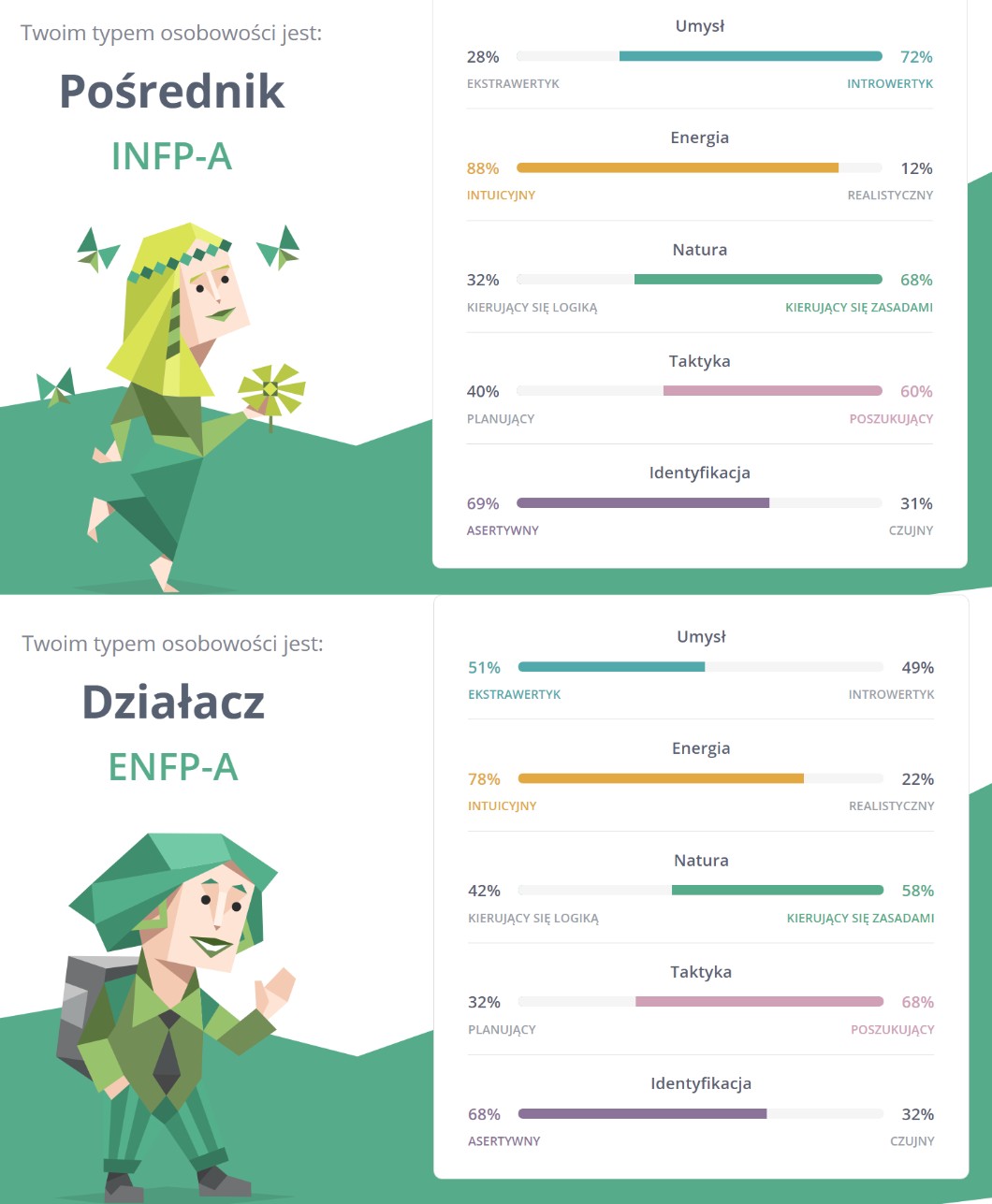 Pośrednik (INFP) oraz Działacz (ENFP)