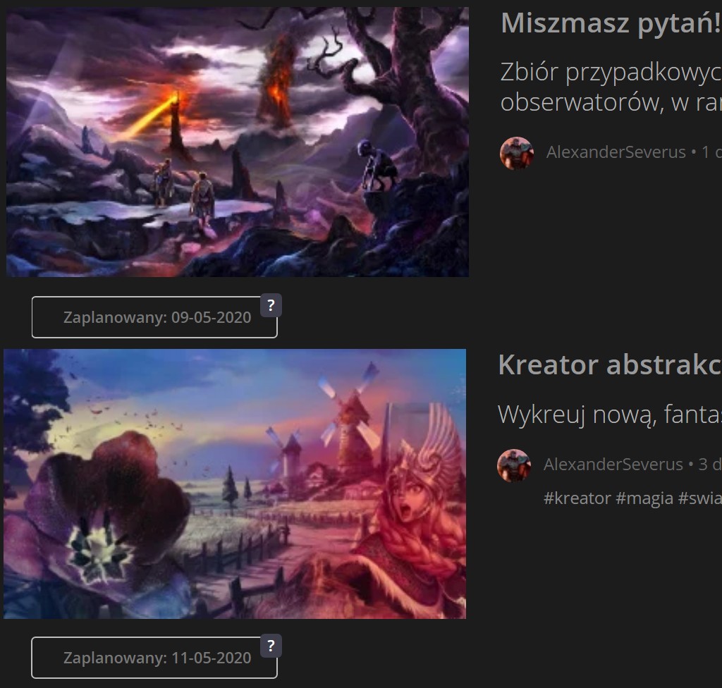 • Kreator abstrakcyjnego świata (głosowanie) – planowany na 11 maja ❤
