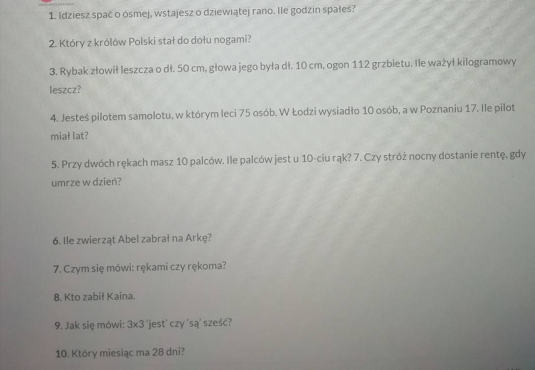 10 pytań kto będzie miał najwięcej dobrze ten wygrywa