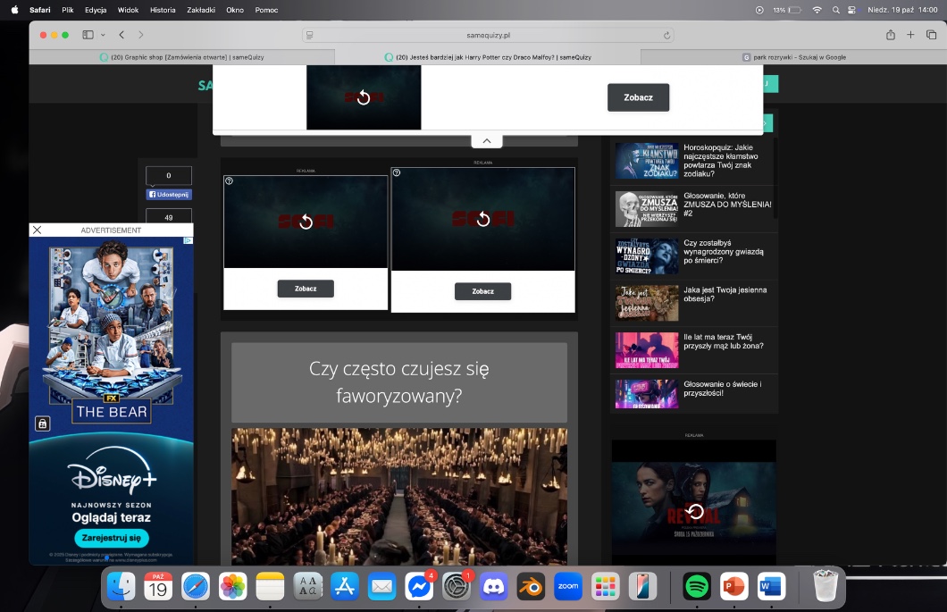 W dodatku chciałam dzisiaj odpisać i serduszkową komentarze z kompa i po prostu padłam, jak zobaczyłam ile reklam jest, kiedy się wejdzie na jakiś quiz na SG na laptopie (zdjęcie poniżej).
