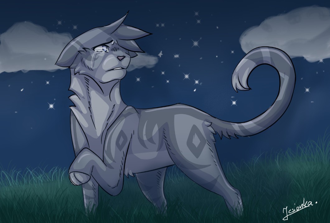 AUTOR•Przeglądając kompa znalazłam moją starą, niedokończoną, leżącą gdzieś w odmętach pamięci pracę. Ja nawet zapomniałam, że takie coś rysowałam XD. Jestem ciekawa ile z was odgadnie kto na niej jest. Podpowiem, że to jeden z moich ulu shipów w Wojownikach