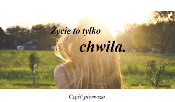 amelamcia05 Życie to tylko chwila. Poznajcie Anastazję. Dziewczyna boryka się z wieloma problemami, jednak nawet nie myśli o tym by się poddać. 0 amelamcia05 • 9 lat temu • 4 0 Rozpocznij serię Życie to tylko chwila. 0 4 0