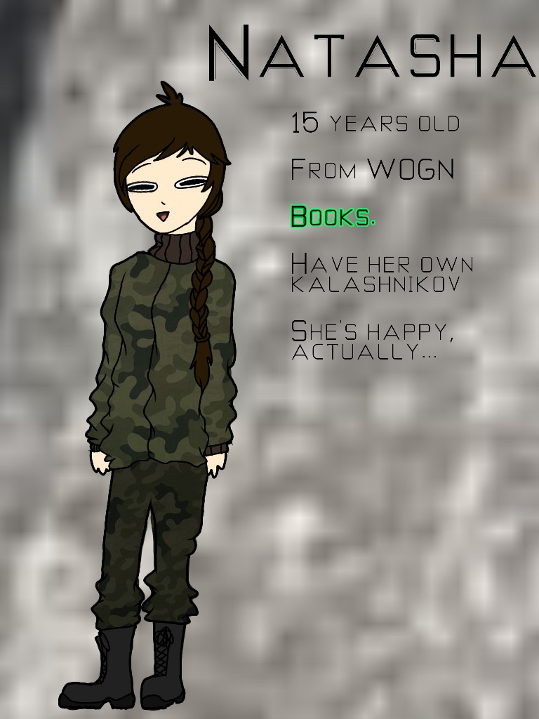 I to jest taka jakby moja OC z uniwersum Metro… Lubię ją, fajna jest. Kiedyś zrobię o niej quiz :D Niestety zapomniałam kolorów dodać, ale hui z tym już