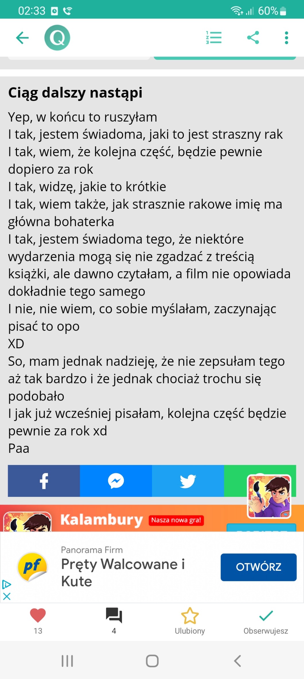 AUTOR•Jakby, dopiero teraz się zorientowałam, że w grudniu zapomniałam sobie zmienić wieku w o mnie xD