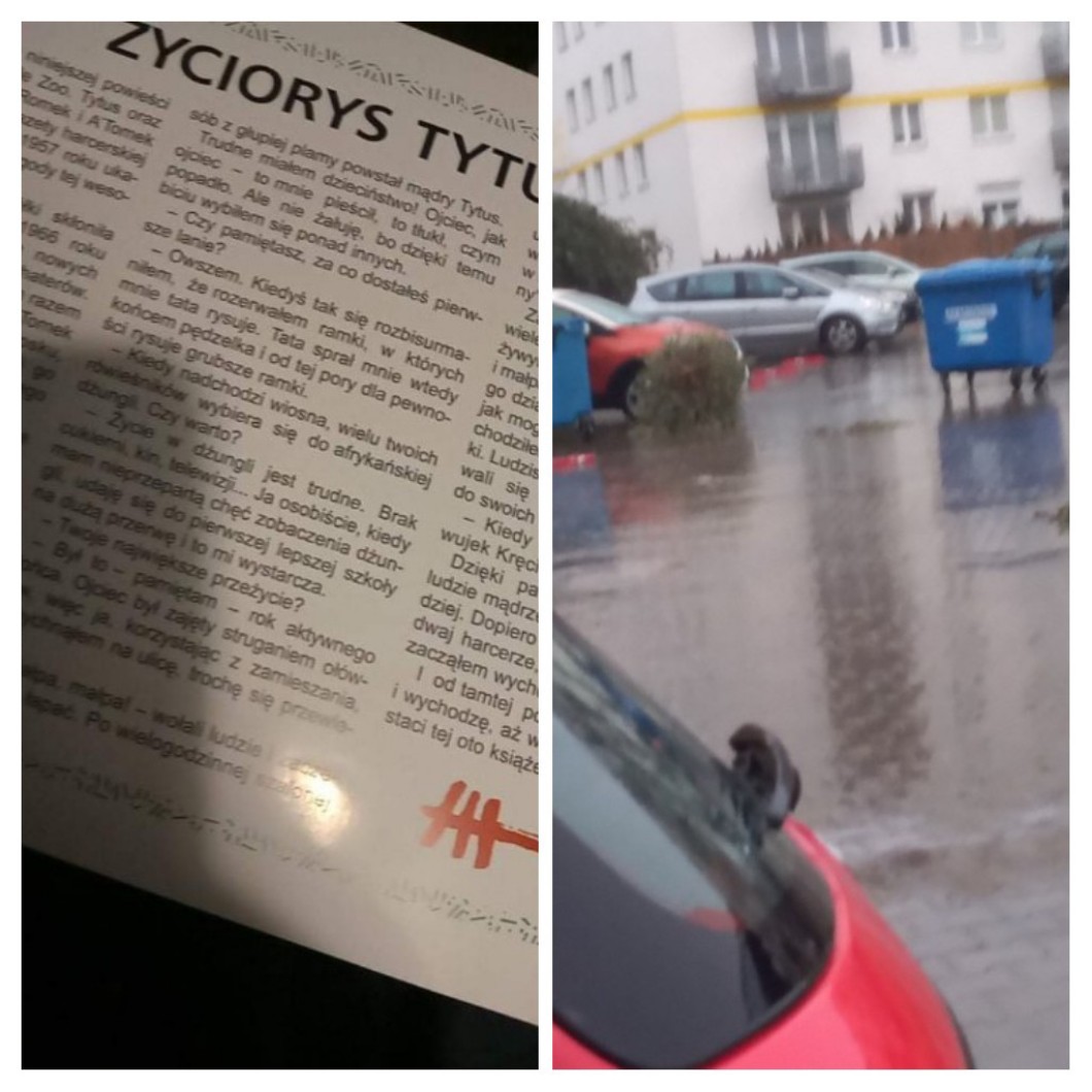 Taki szybki wpis 😅 Pozdro z długiej przerwy w mojej szkole 👀 Wczoraj wieczorem czytałam sobie życiorys Tytusa 😂 Tak dawno tego nie czytałam ✨ A jak wyszłam z domu musiałam zakładać dwa kaptury. Lało i wiało jak nie wiem! Tutaj widok po wyjściu z bloku. Śmietniki mówią adios 👋