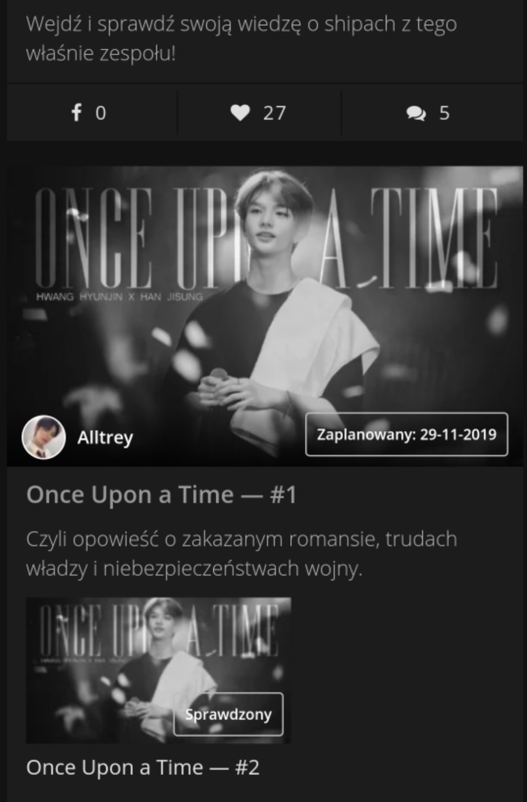 2. Powstaje również SS — (Stray Souls). Mam napisane pół prologu i kawałek części o hyunsungach. Chciałabym najpierw napisać całość, a dopiero potem zacząć publikować, więc może się ono pojawić dopiero na początku stycznia.