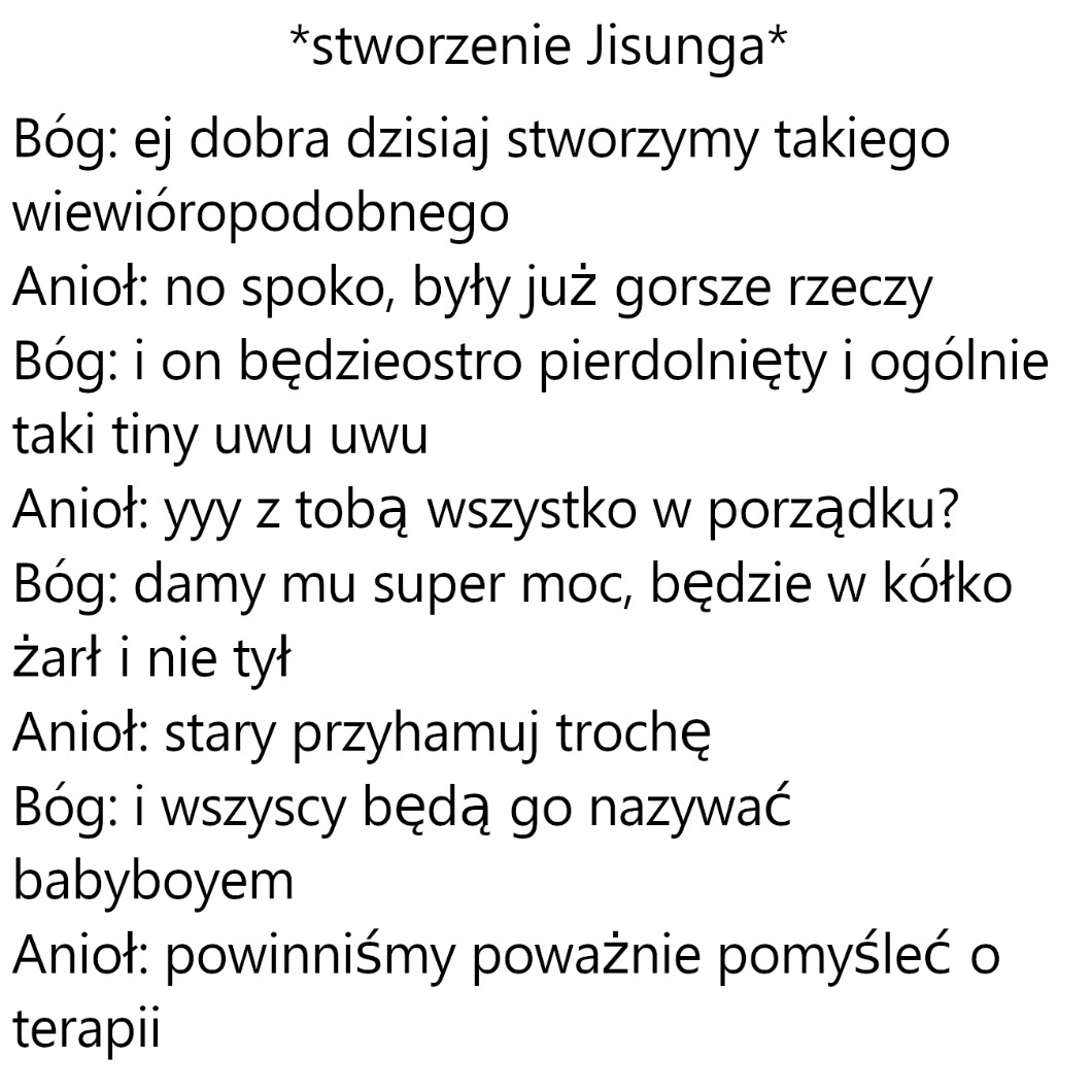 teraz moim UB jest Jisung (i Chan) i jakby shippuje go prawie z każdym I TO JEST KURVA PROBLEM BO NI Ch*** NIE WIEM JAKI SHIP WYBRAĆ. Ale serio, mam takie wahania że to hit xDD.