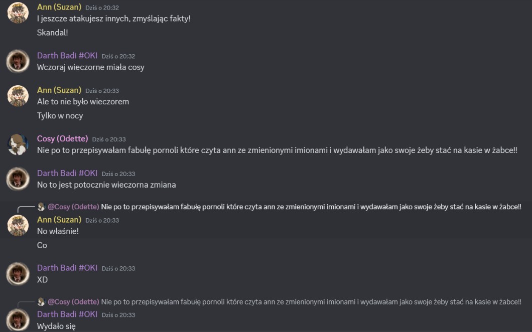 A, i dziękuję bardzo Med, że wstawił mój wcześniejszy wpis o tym, że szukamy chętnych do gry w mafię <33