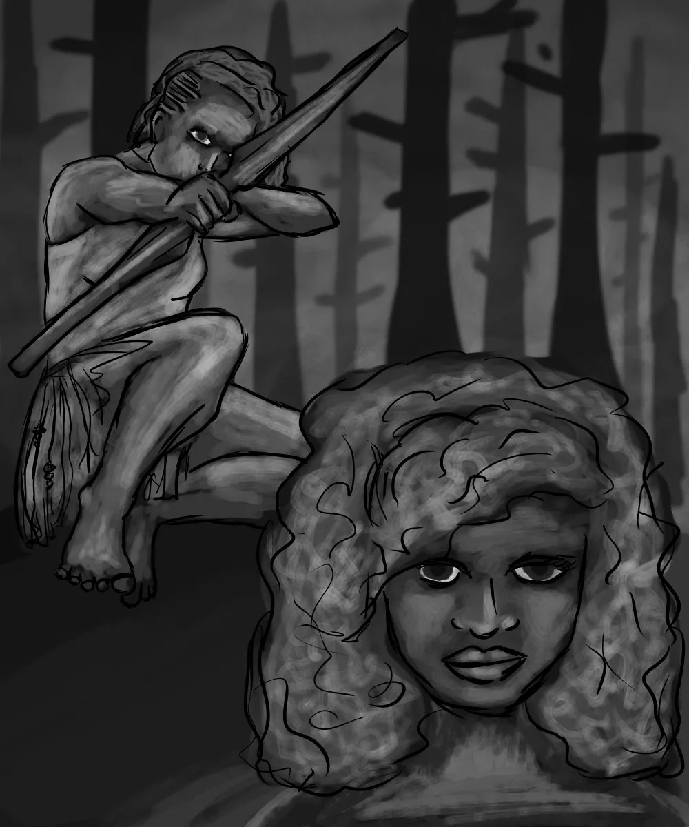 No a tu jest driada dla zobaczenia jaki to styl, co obrałam. I tak ciemno jest w sumie nie specjalnie. I jakby… Nie wiem jaki jest ogólny, najbardziej powszechny koncept na driady, ja się z nimi spotkałam w Narni i Wiedźminie i to zdecydowanie nie będą takie driady, ale jak ktoś wie to chętnie bym zkonfratowała moje z tymi podstawowymi.