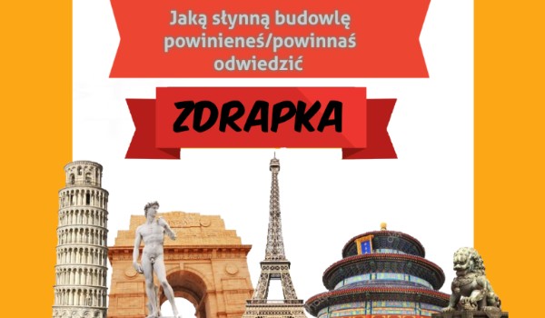 Powinieneś /powinnaś odwiedzić Krzywą wieżę w Pizie, Wieżę Eiffla, a może Big Bena? Ta zdrapka powie Ci jaką słynną budowlę powinieneś /powinnaś odwiedzić.