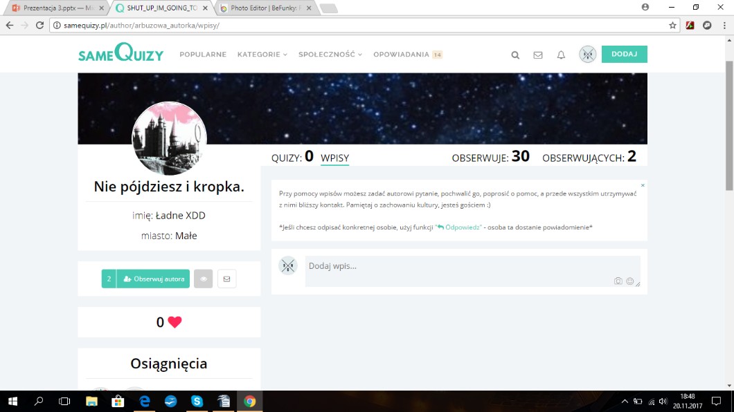 Przy pomocy wpisów możesz zadać autorowi pytanie, pochwalić go, poprosić o pomoc, a