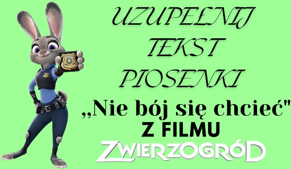 Czy uda Ci się poprawnie uzupełnić tekst piosenki ,,Nie bój się chcieć” z filmu animowanego ,,Zwierzogród”? Sprawdź!