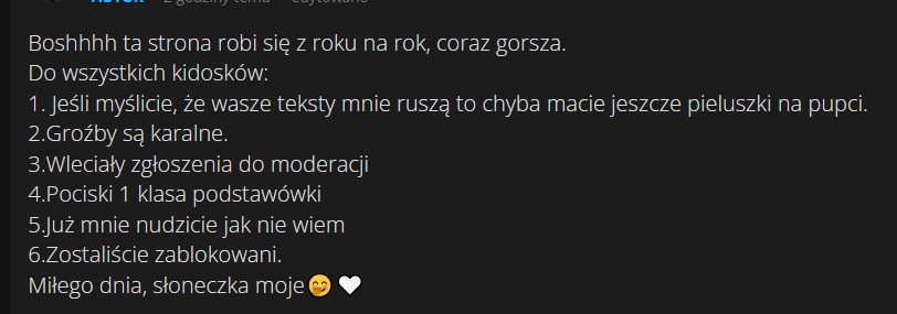 AUTOR•najpierw sie wpierdalasz w podobno jakas "drame" a potem piszesz ze strona robi sie coraz gorsza xd