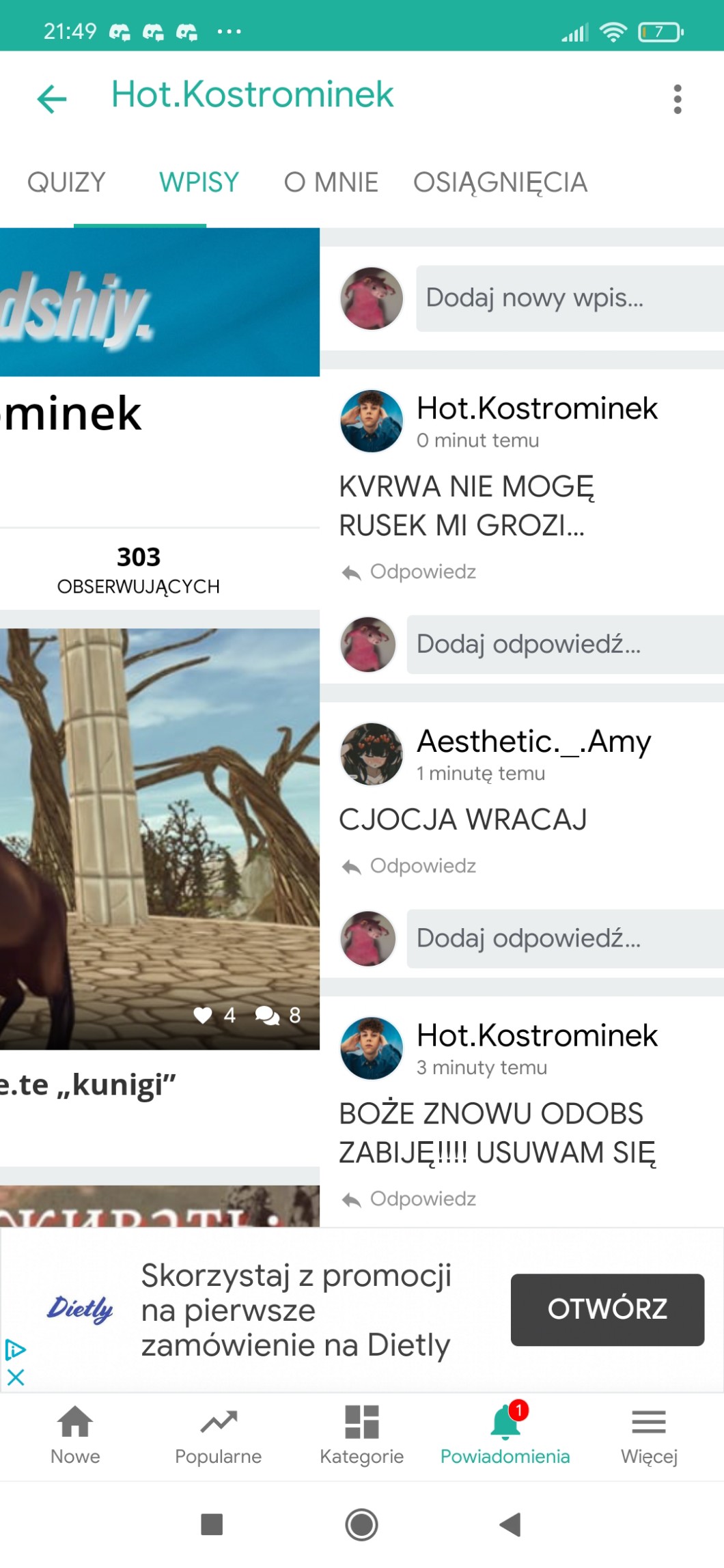 Przy pomocy wpisów możesz zadać autorowi pytanie, pochwalić go, poprosić o pomoc, a