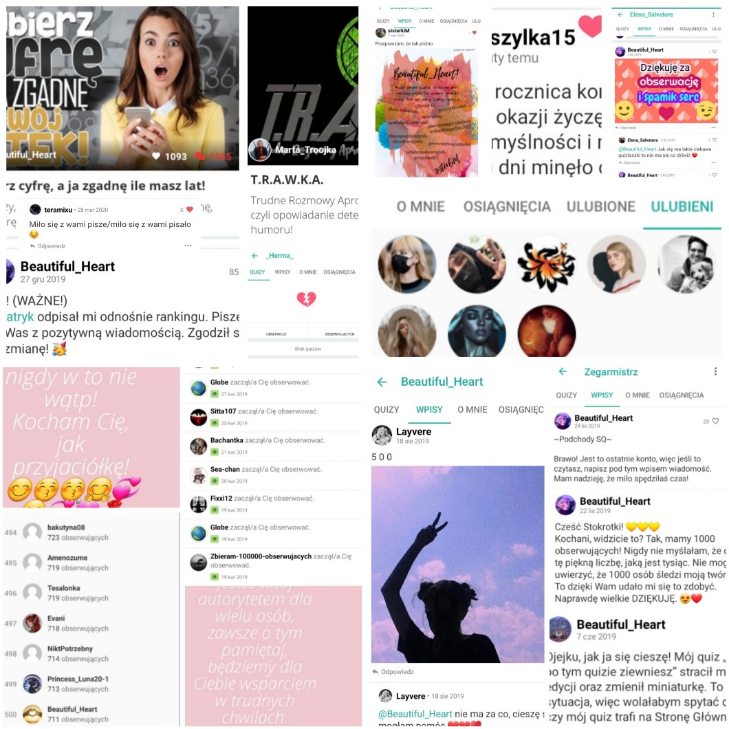 Na długo w pamięci została mi pierwsza kłótnia z użytkowniczką, wtedy jeszcze nie byłam na nią przygotowana. Narzucała mi się, że to niesprawiedliwe, że w tak krótkim czasie zdobyłam wielu obserwatorów i ponad 10 quizów trafiło na SG. Oczywiście kpiła ze mnie, żebym nawet nie myślała o osiągnięciu tu czegoś, o rankingu. Ale czas idealnie pokazał, że nie warto się poddawać, zniechęcać, ponieważ każdy ma równe szanse, wystarczy odrobina motywacji. Życzę Wam, żebyście także wytrwale dążyli do sukcesu. 💪