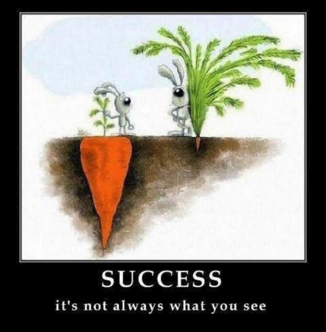 Bądź wytrwała, kreatywna, cierpliwa, a sukces w końcu do Ciebie przyjdzie. Czasem nawet już jest, a go nie widzisz. Poniżej zostawiam obrazek na pocieszenie, który intepretuję tak, że pozory mylą. Czasem nie dostrzegamy osiągnięć, które już zdobyliśmy. Myślę, że jeszcze wiele razy Twój quiz straci edycję.