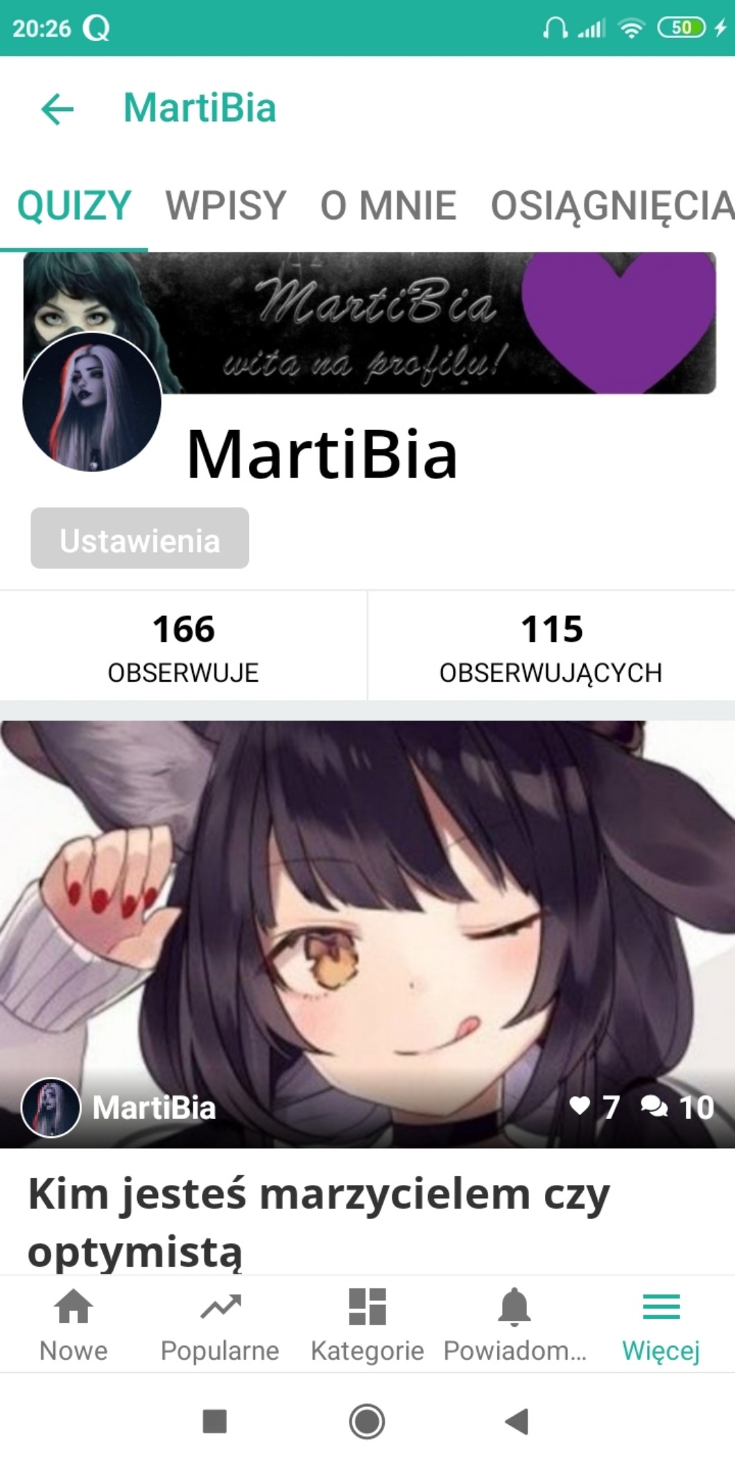AUTOR•będę was nazywać pandy …hej pandy mam dla was nowinę dzięki wam mam 115 obs a jeszcze dzisiaj miałam 100obs dziękuję wam a więc jutro będzie specjał a więc szybko zapisujcie się pod tym wpisem czy chcecie brać udział w bitwie profilowym …żeby w tym uczestniczyć piszcie @MartiBia robi konkurs
