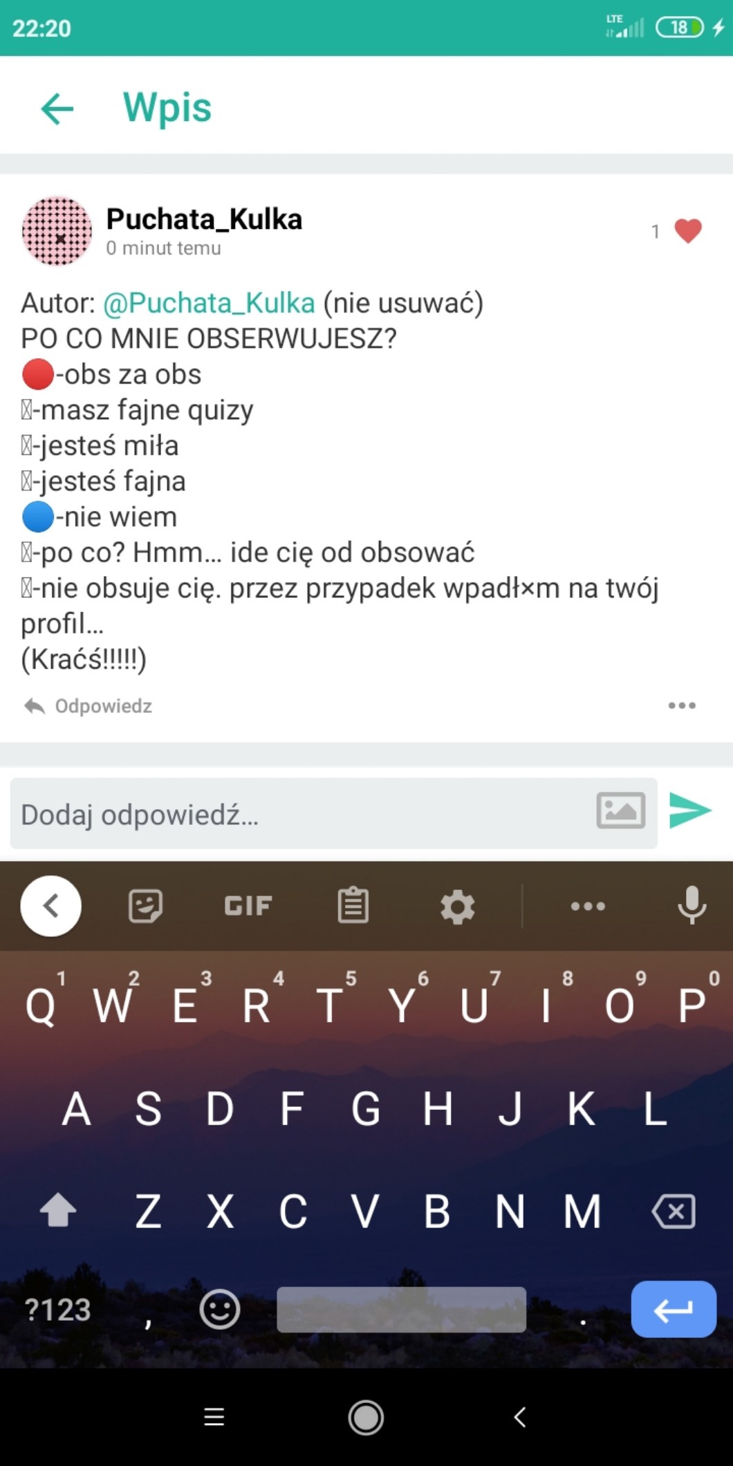 Przy pomocy wpisów możesz zadać autorowi pytanie, pochwalić go, poprosić o pomoc, a