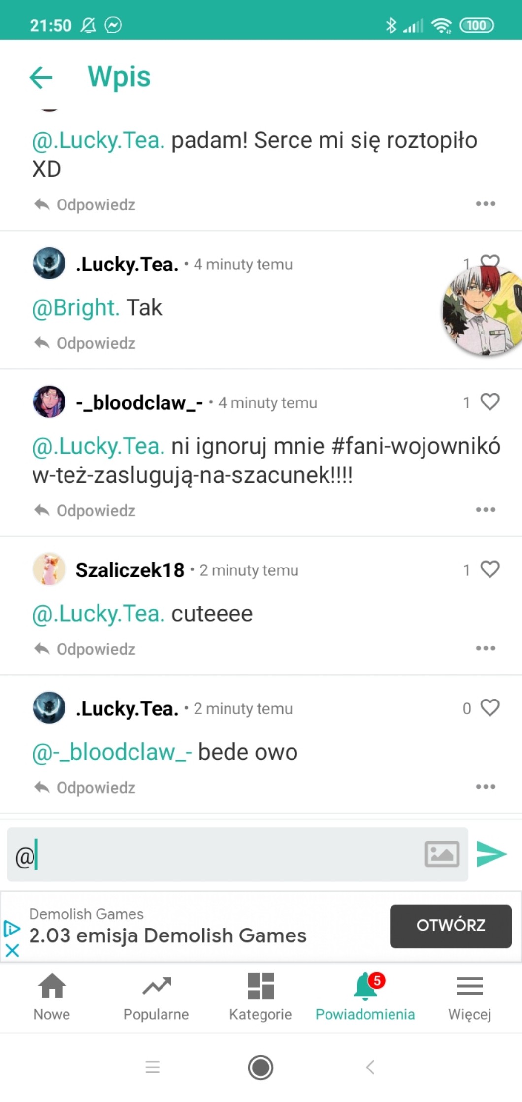 AUTOR•Ej na SQ jest użytkownik : Lucky.Tea. jest bardzo uwzięta. Wyzwwa wojowników i twoży konta by ich obrażać, życzyłam jej wojowniczego dnia to miała pretensje. Jak ktoś powie o wojownikach to robi dramę i mó mówi że taka osoba nie cztalam sfory i zaczną gadkę że woja są głupie itd. Ja cztam sforę i wojowników obie serie są fajne ale żeby mieć taki bul jęk wspomnę o wojo? Proszę zrubmy coś z tym