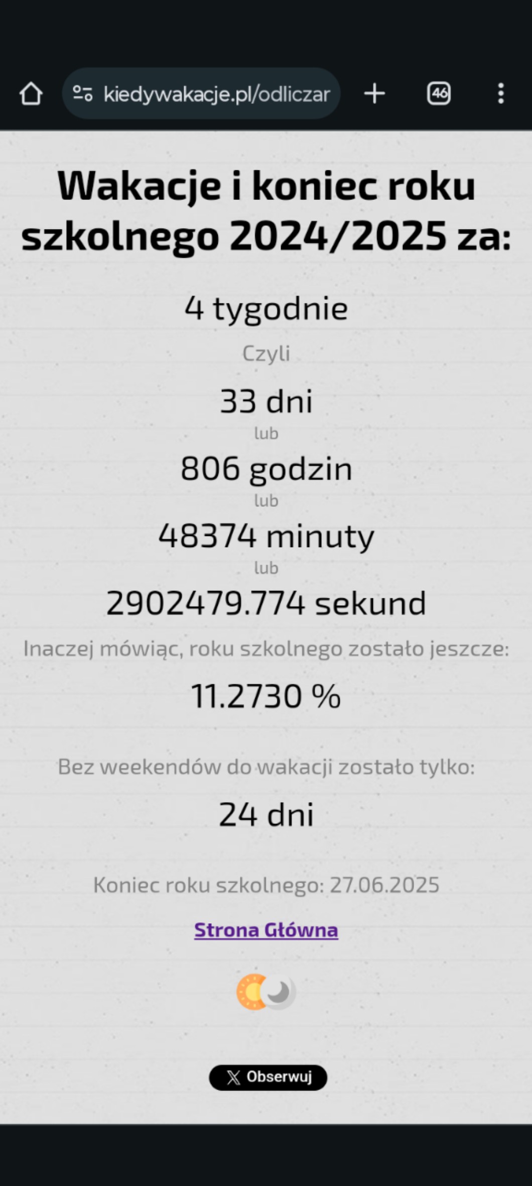 1. Ile zostało dni do wakacji bez weekendu ?