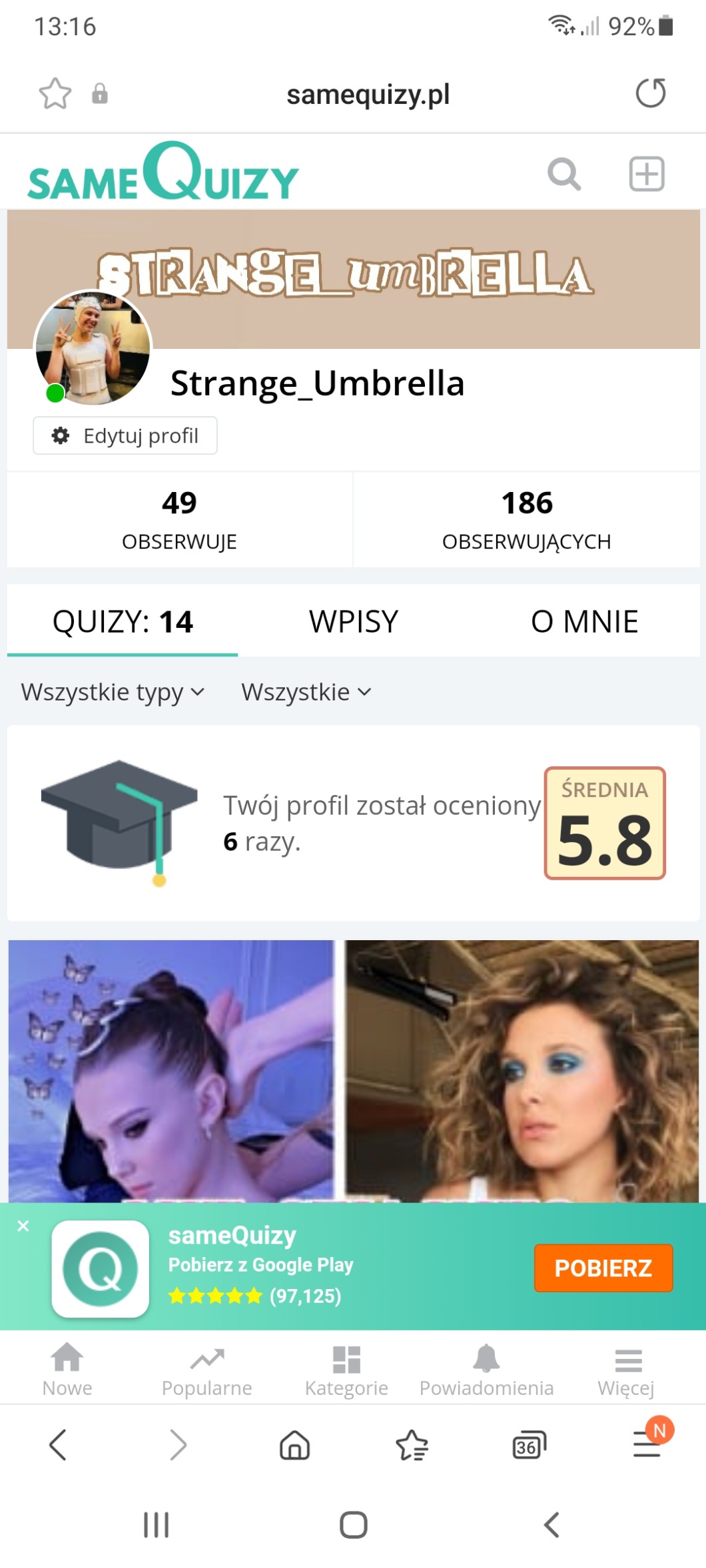 13 czerwca poprzedniego roku założyłam tu konto o nazwie @Black_Niffler i próbowałam tworzyć quizy bo już od dawna o tym marzyłam i miałam nawet parę pomysłów(których oczywiście już nie pamiętam) więc założyłam konto. Nie wiem jak sobie wyobrażałam wtedy tworzenie quizów na sq, ale mi się to nie spodobało i po jednym dniu odinstalowałam apkę itd. lecz się NIE wylogowałam ani nie usunęłam konta